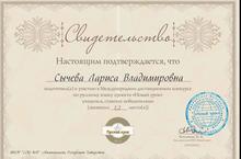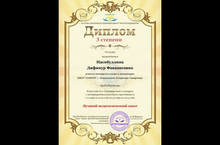 Бекбаеву Сабину занявщую второе место в Международном дистанционном конкурсе по русскому языку проекта "Новый урок"