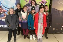 На каникулах 3 Б класс, хоть и не многочисленным составом, посетил кинотеатр Синема 5. Посмотрели странный, но тем не менее интересный мультфильм «Семейка Аддамс: горящий тур».