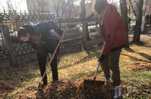 Ученики 5А класса не остались в стороне. Усердно убирают закрепленную за классом территорию. Глаза боятся, руки делают. Молодцы!