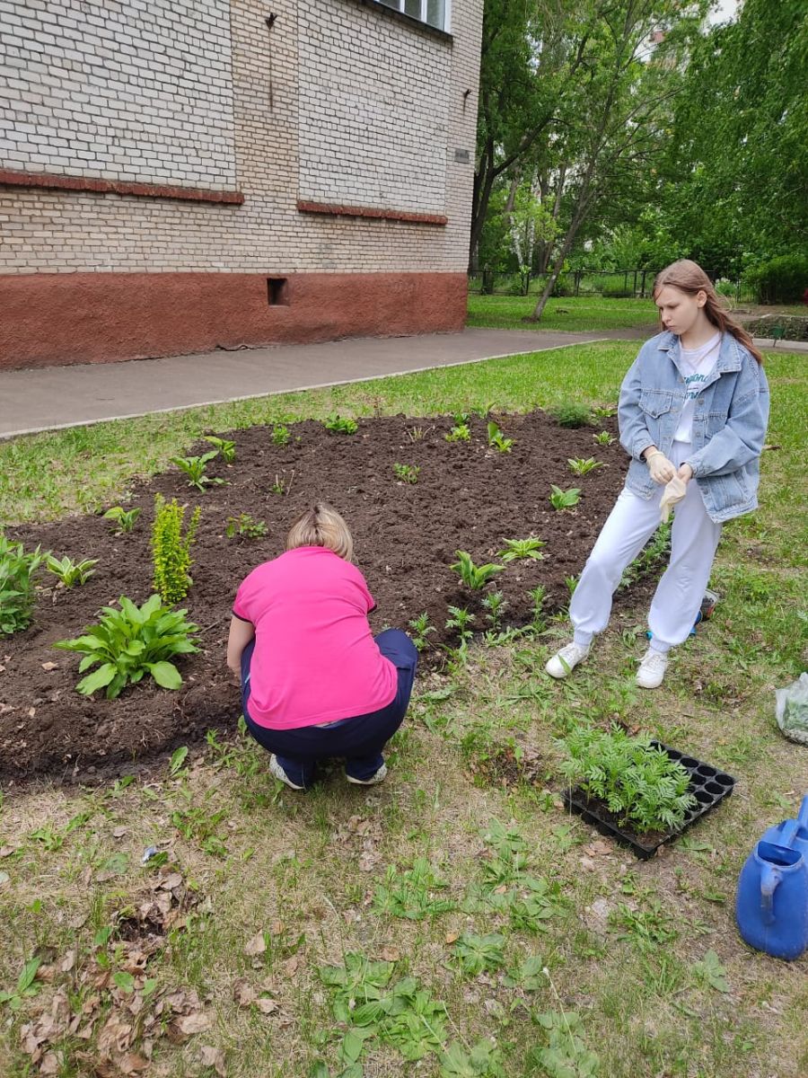 Сегодня под руководством педагога М.Н. Кадриевой, в рамках приемственности, учащиеся 7 А класса помогали учащимся 3 В класса в озеленении пришкольной территории. Молодцы! -