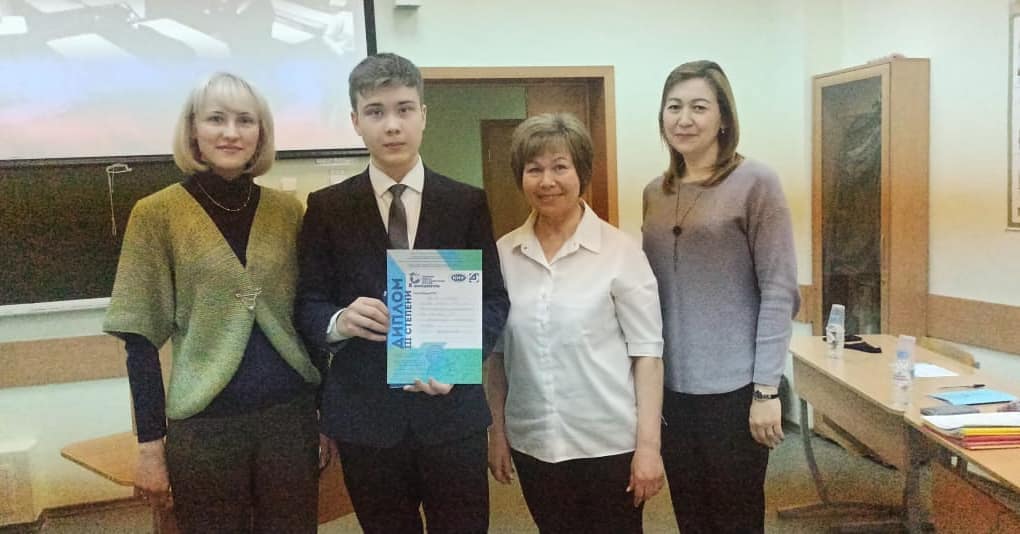 Поздравляем ученика 8А класса Нуриева Ильнура с третьим местом на Поволжской юношеской научно-исследовательской конференции "Я - исследователь". Выражаем благодарность руководителям Нуриевой Э.Г., Нуртдиновой Г.А. за подготовку призера! -