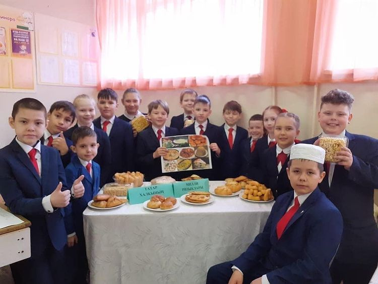 Сегодня у учащихся 3 В класса прошло мероприятие приуроченное Году Родного языка - "Тэмле дэ сон, халкым, синен ашларын!". Ребята поделились рецептами татарских национальных блюд, а также угостили всех желающих и попили чай в школьной столовой.