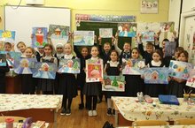 Ученики 3 Б класса подготовили изумительные рисунки к выставке "Новогодний переполох". Работы настолько хороши, что можно отправлять на Международную выставку.