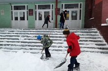 25 декабря 2023. Учащиеся 5В класса вместе с учителем технологии Ибрагимовым Тимуром Александровичем вышли на уборку пришкольной территории от выпавшего снега. День выдался ясный, снежный и ветреный. Учащиеся с большим усердием убирали территорию родной школы.