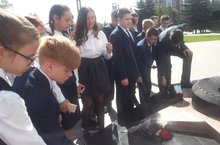 Сегодня учащиеся 6Б, 7Б классов посетили Монемент Победы после реконструкции, возложили цветы.