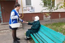 Акция "Георгиевская ленточка", раздача георгиевских лент с памяткой "Как правильно носить георгиевскую ленту".