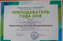 Поздравляем учителя химии Нуруллину Оксану Владимировну, занявшую I место в Международном научно-методическом конкурсе "Преподаватель года - 2018" в секции "Педагогические науки" с работой на тему "Применение образовательных технологий в учебном процессе"
