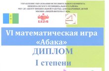 Команда 6 а класса в составе Марданова Самата, Мирзина Тамерлана, Наумовой Валерии, Никитина Кирилла (учитель Усанова Любовь Ивановна) награждена дипломом I степени в VI математической игре "Абака" среди учащихся школ города. Поздравляем с победой и желаем дальнейших успехов!