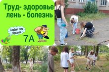 Труд - здоровье, лень - болезнь. Учащиеся 7А класса трудятся не покладая рук на летней отработке.