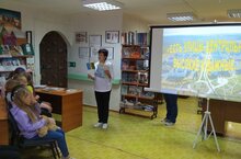 19 июня дети пришкольного лагеря посетили библиотеку. Там их познакомили с новыми произведениями С. Михалкова «Самый главный великан».