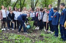 04 мая учащиеся 6Б и 7А классов Школы №9 приняли активное участие в историческом для нашей школы событии - Акции «Ёлочка Победы». В которой учащиеся посадили ели на территории школы. Каждый класс посадил по деревцу для будущей «Аллеи памяти».