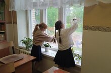 Учащиеся 8Б класса Школы №9 вместе со своим классным руководителем Бельковой Ириной Алексеевной в преддверии 9 мая украсили окна своего кабинета для участия во Всероссийском конкурсе «Окна Победы».