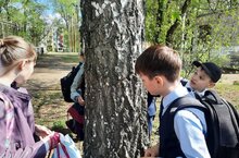 28 апрель көнне 2Б сыйныф укучылары “ЭКОВЕСНА” экология икеайлыгы кысаларында “Ак каен” экология акциясендә катнаштылар. Балалар белән әңгәмә үткәрелде, аннары ишегалдына чыктылар һәм балалар агачларны "дәваладылар" - аларның сылау җәрәхәте, каен суы ага, пластилин.