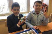 Ребята сначала построили модель головастика, а затем прирастили ему лапки, чтобы он попрыгал ! Дети использовали зубчатую передачу, т.е. соединяли шестерёнки так, чтобы движение с мотора передавалось на лапки лягушонка. Детям очень понравилось. -