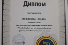 Поздравляем учащуюся 4А Класса Вишнякову Татьяну и преподавателя английского языка Обухову Ирину Витальевну за 1 место в региональной викторине по английскому языку "Wonder English" для обучающихся 4 классов среди средних общеобразовательных школ. Молодцы ! Гордимся ! Так держать !