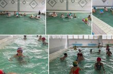14 июня ребята из лагеря плавали в бассейне. С огромным удовольствием они плавали и играли.