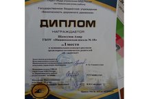 Поздравляем ученика 8 «А» класса Коржева Вадима, руководитель Шаихова С.Н., с почетной грамотой за 3 место в муниципальном этапе 4 Республиканского конкурса творческих работ «Дорога безопасности». Молодец!!!