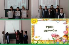 С целью формирования представлений учащихся о Родине, как великой многонациональной державе; воспитания любви к Родине, дружеского и уважительного отношения к представителям других национальностей 09.03.2017г был проведён «Урок дружбы» - «Наше многонациональное государство». Ребята узнали, что по данным переписи населения, которая проходила в 2010 году в России зарегистрировано 194 национальности. У каждого народа своя культура, свои традиции и обычаи, свой национальный язык.