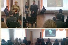 Урок памяти, посвященный 70-летию Международного военного трибунала в Нюрнберге с просмотром фильма «Нюрнберг. 70 лет спустя» для учащихся 8-9 классов был организован в школе 18.01.2016 г. в 13.00. Перед просмотром фильма с речью о необходимости помнить, знать и чтить историю своей страны выступили учитель истории школы – Желнова Алёна Владимировна и Ганиев Мансур Курбан Галиевич – представитель шуры аксакалов, заслуженный экономист РТ. На мероприятии также присутствовала представитель общественности, председатель СТОС – Орлова Лариса Алексеевна.