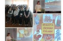 В рамках проведения национального проекта "Россия - мои горизонты" для учащихся 5-9 классов проведен классный час на тему "Красота своими руками". Цель занатия - воспитывать нравственно-эстетическое отношение к миру, интерес и любовь к Родине, ее истоии и культуре, её истокам; чувство патриотизма, уважения и восхищения художественным мастерством народных умельцев. В России очень много мест, где с любовью создаются великолепные предметы и изделия, неповторимые по своей красоте! Многие из них - гордость нашей страны.