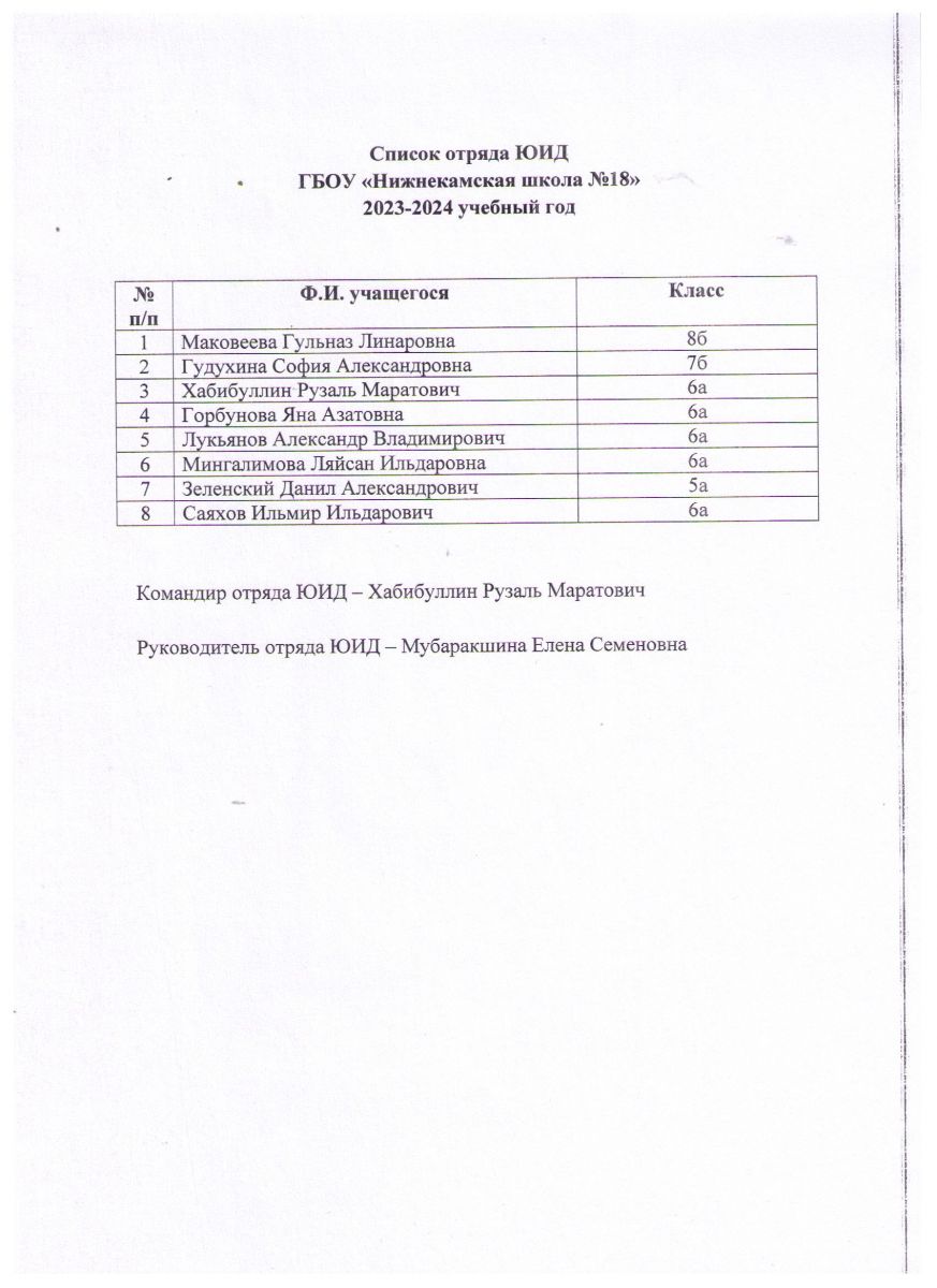 Приказ о создании отряда ЮИД и назначении руководителя отряда;