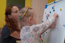 Благодаря выкладыванию несложных композиций у дошкольников формируются зрительно-двигательные связи, развивается мелкая моторика, движения пальцев становятся более уверенными. Полученный опыт составления сюжетных композиций из готовых форм помогает в последующем рисовании .Воспитанники ясельной группы учатся составлять из готовых элементов грибочки, развивая при этом чувство формы, величины и композиции. ( Воспитатель Калимуллина Р.Ф.).