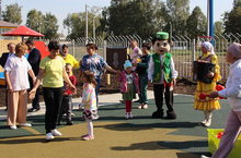 Балалар әниләрен бәйрәм белән котладылар, уенлы җырлар җырладылар