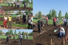 На прошлой неделе, в субботу, силами учащихся и учителей школы были начаты работы по озеленению. Были высажены такие культуры, как: картофель, морковь, свёкла, лук, редис, зелень, цветы. Также для озеленения школы были посажены лиственницы.