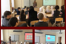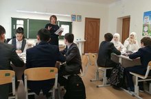 В рамках Недели русского языка и литературы в 7 классе был проведен открытый урок по русскому языку по теме " Подготовка к сочинению по картине К. Юона " Конец зимы. Полдень". Учительница - Гизатуллина Г.А.