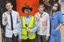 29 октября в нашей школе прошел праздник "Halloween". Обучающиеся очень интересно и весло провели время. Они участвовали в различных конкурсах, викторинах и играх. Участвовали в конкурсе на "Самый лучший костюм", где 1-е место занял ученик 9 класса Аширов Динар.