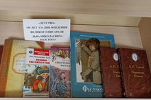 В библиотеке представлена книжная выставка "Детство", посвящённая 195-летию со дня рождения великого русского писателя Льва Николаевича Толстого.