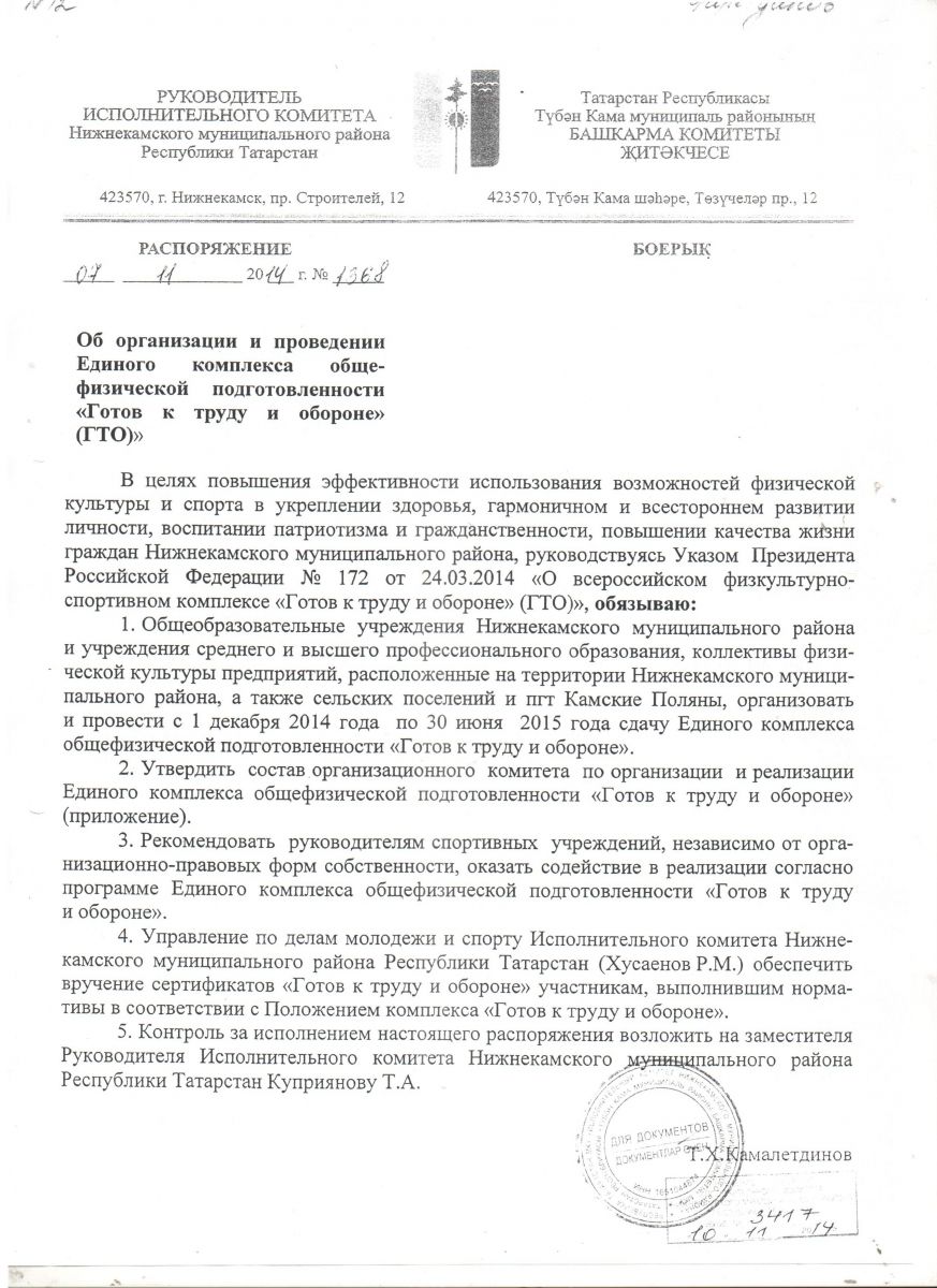 приказ об организации и проведении Единого комплекса общефизической подготовленности "Готов к труду и обороне (ГТО)"