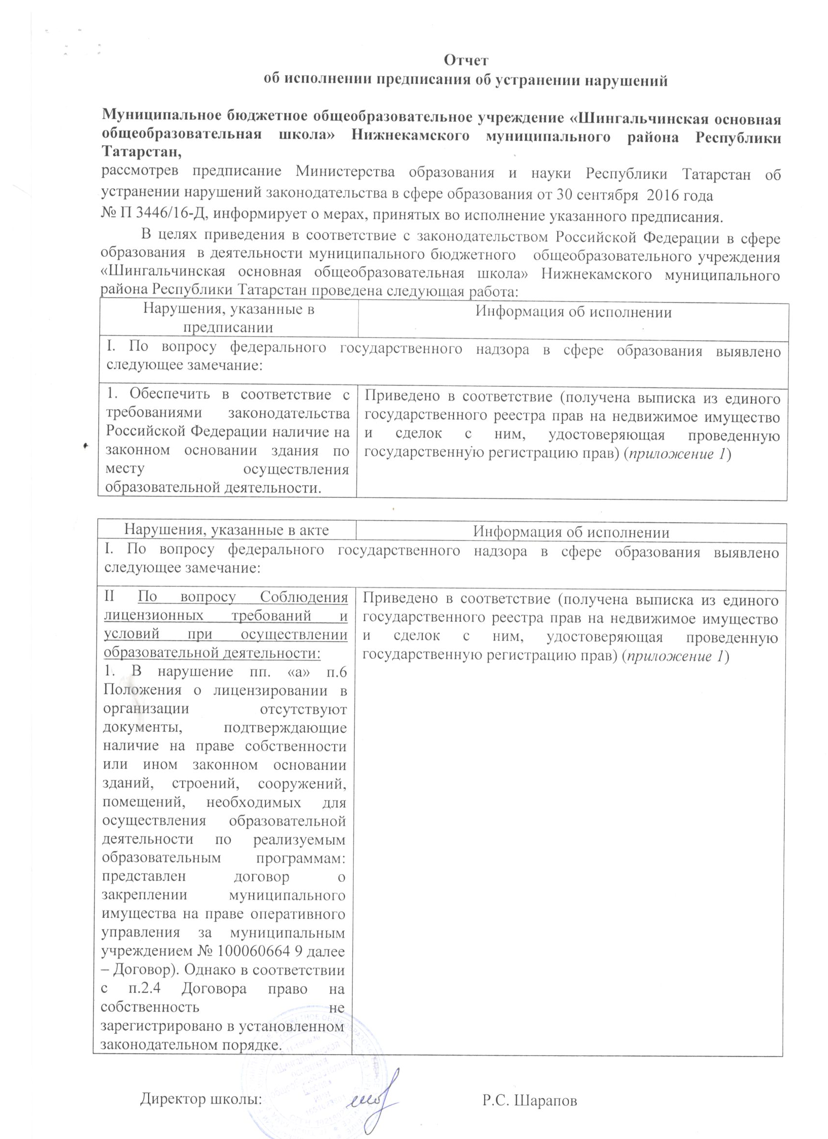 Отчет об исполнении предписания об устранении нарушений 2016 .docx
