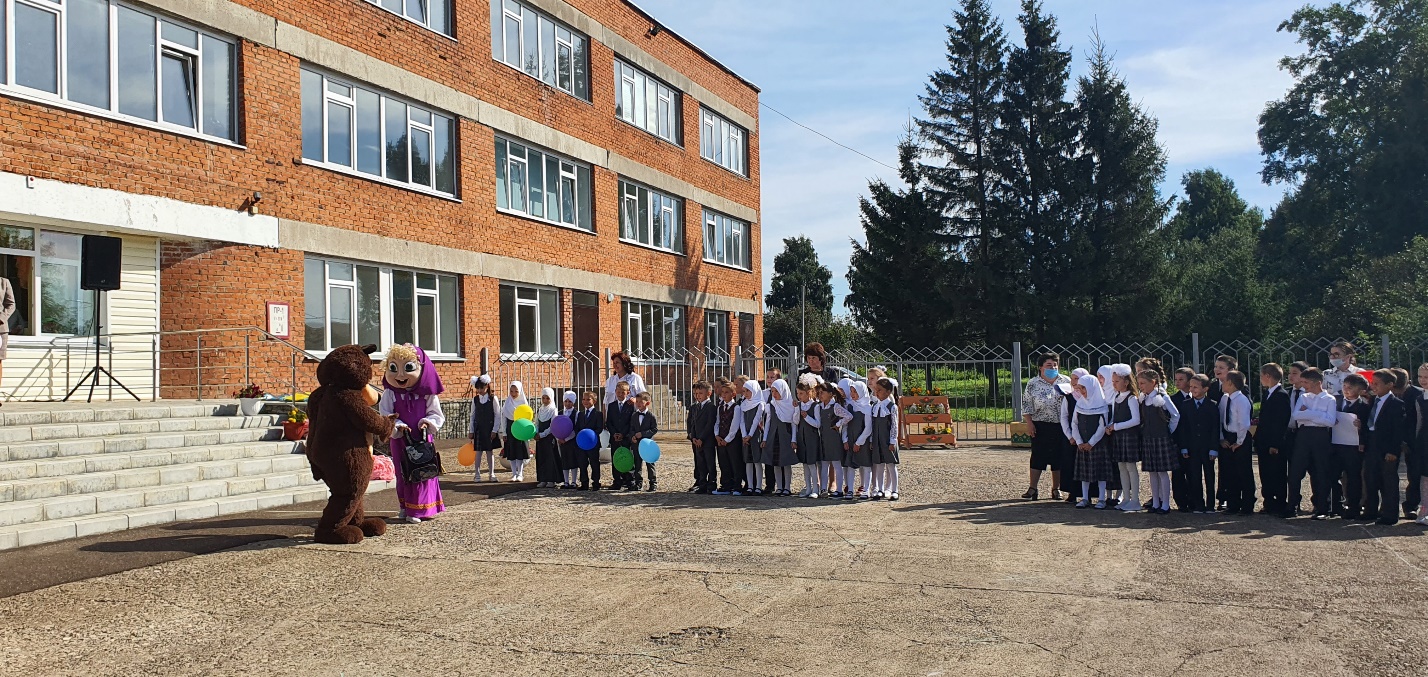 Опубликовано: 01.09.2020Вот и наступила пора идти в школу. 1 сентября это праздник, который ждали с нетерпением, не только все ученики нашей школы, но и наши первоклассники. Всех ребят на мероприятии поздравили наши гости: костюмированные персонажи мультфильма «Маша и медведь», глава сельского поселения Салимов Р.Х., а также ветеран труда Абдуллина Мадина Салимгараевна.