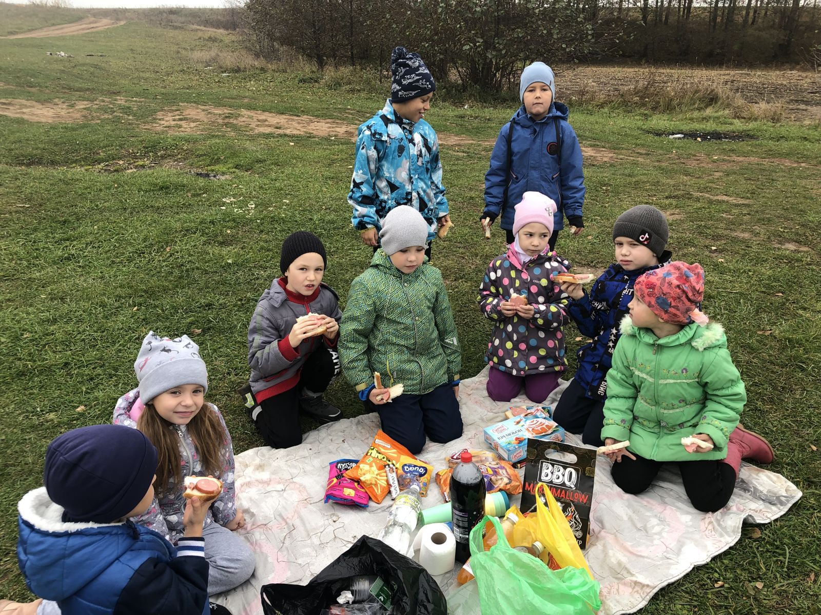 Опубликовано: 11.10.2021Сегодня 1 класс с классным руководителем ходили на пикник. Они очень весело провели время, жарили маршмеллоу, играли в футбол, дышали свежим воздухом.