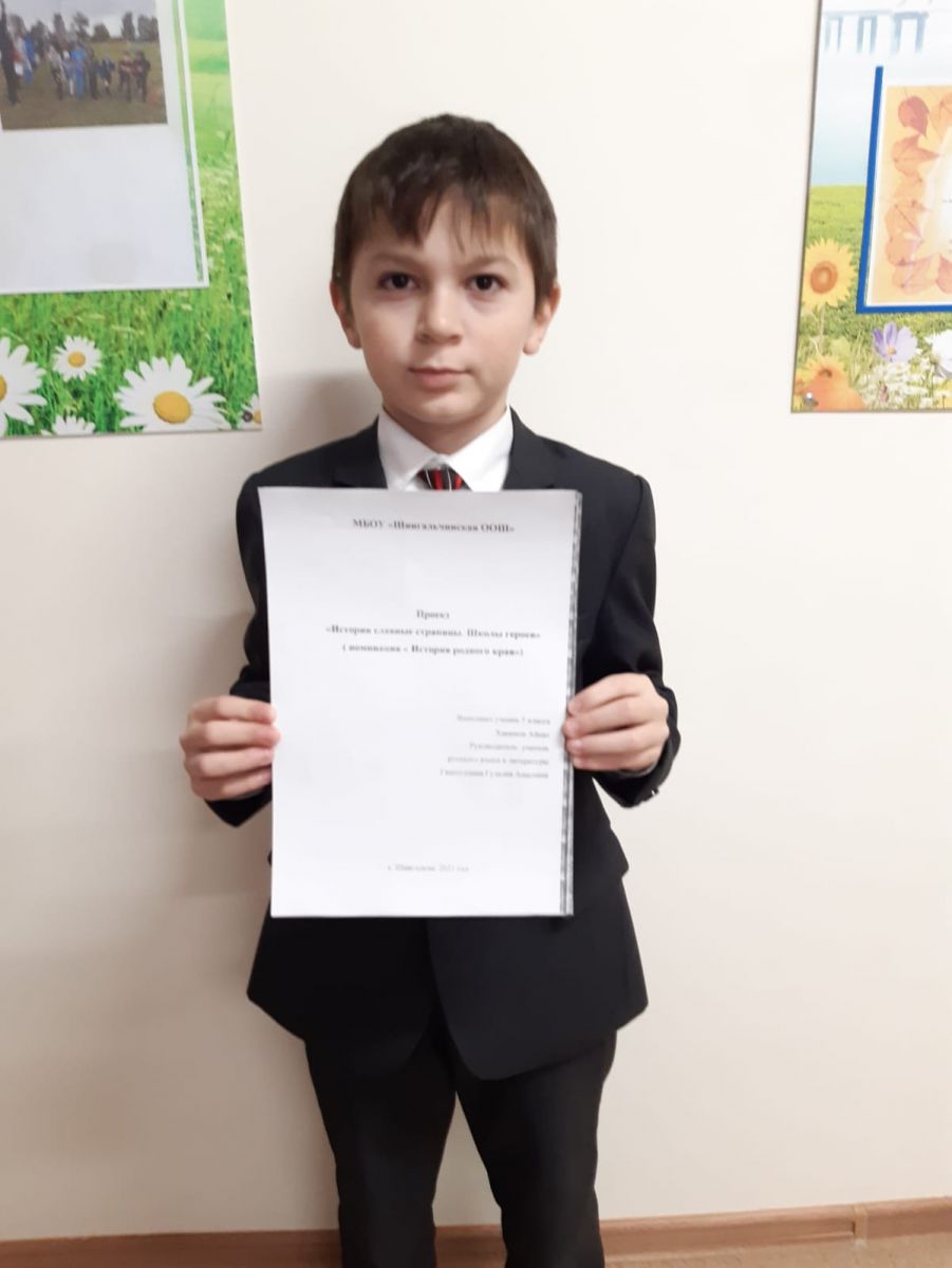 Опубликовано: 06.12.2021Ученик 5 класса Хакимов Айназ принял участие в муниципальном конкурсе исследовательских работ "Истории славные страницы.Школы героев".