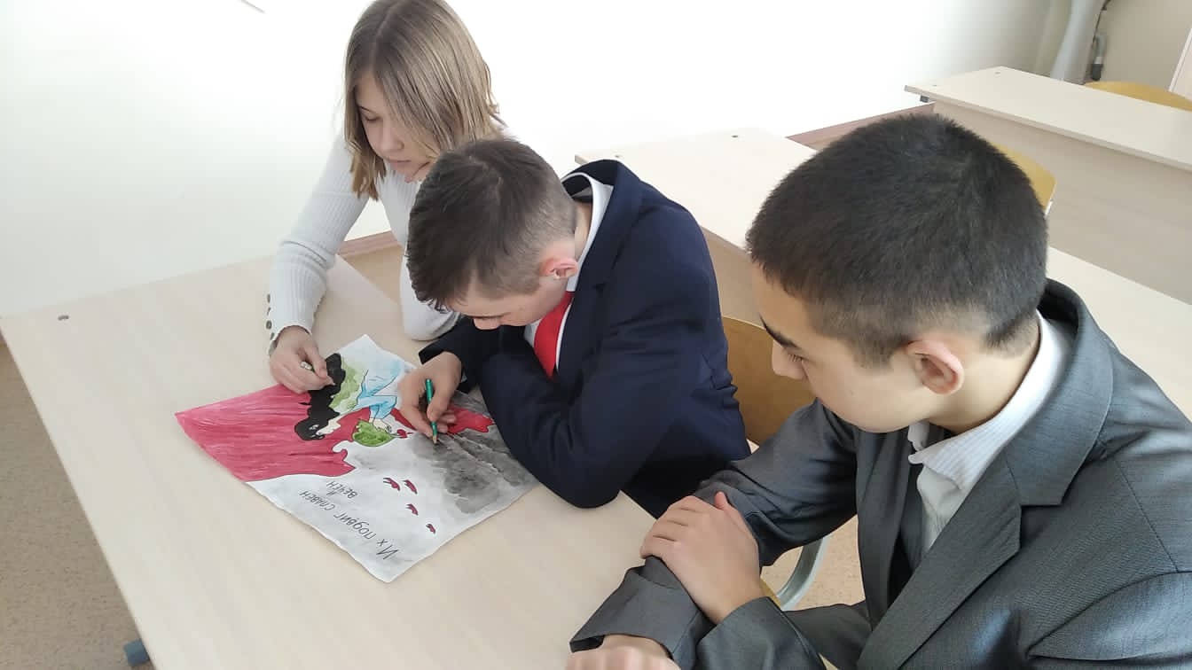Опубликовано: 31.01.2022Обучающиеся 8 класса готовятся к выставке стенгазет, посвященный военно-патриотическому месячнику, конкурс "Их подвиг славен и вечен".