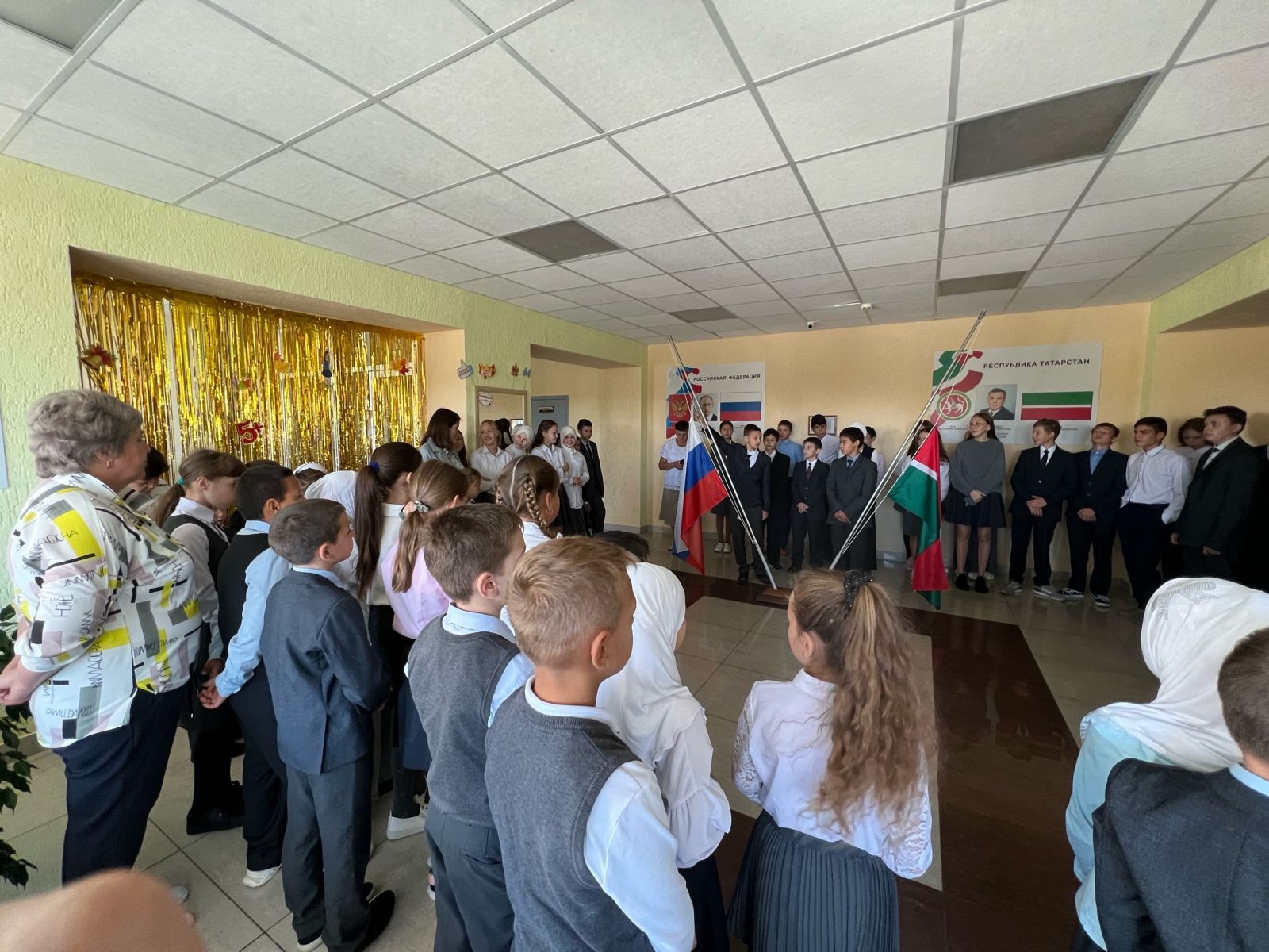 Опубликовано: 18.09.2023Наша учебная неделя началась с линейки , где торжественно поднимали флаги Российской Федерации и Республики Татарстан под гимны.
