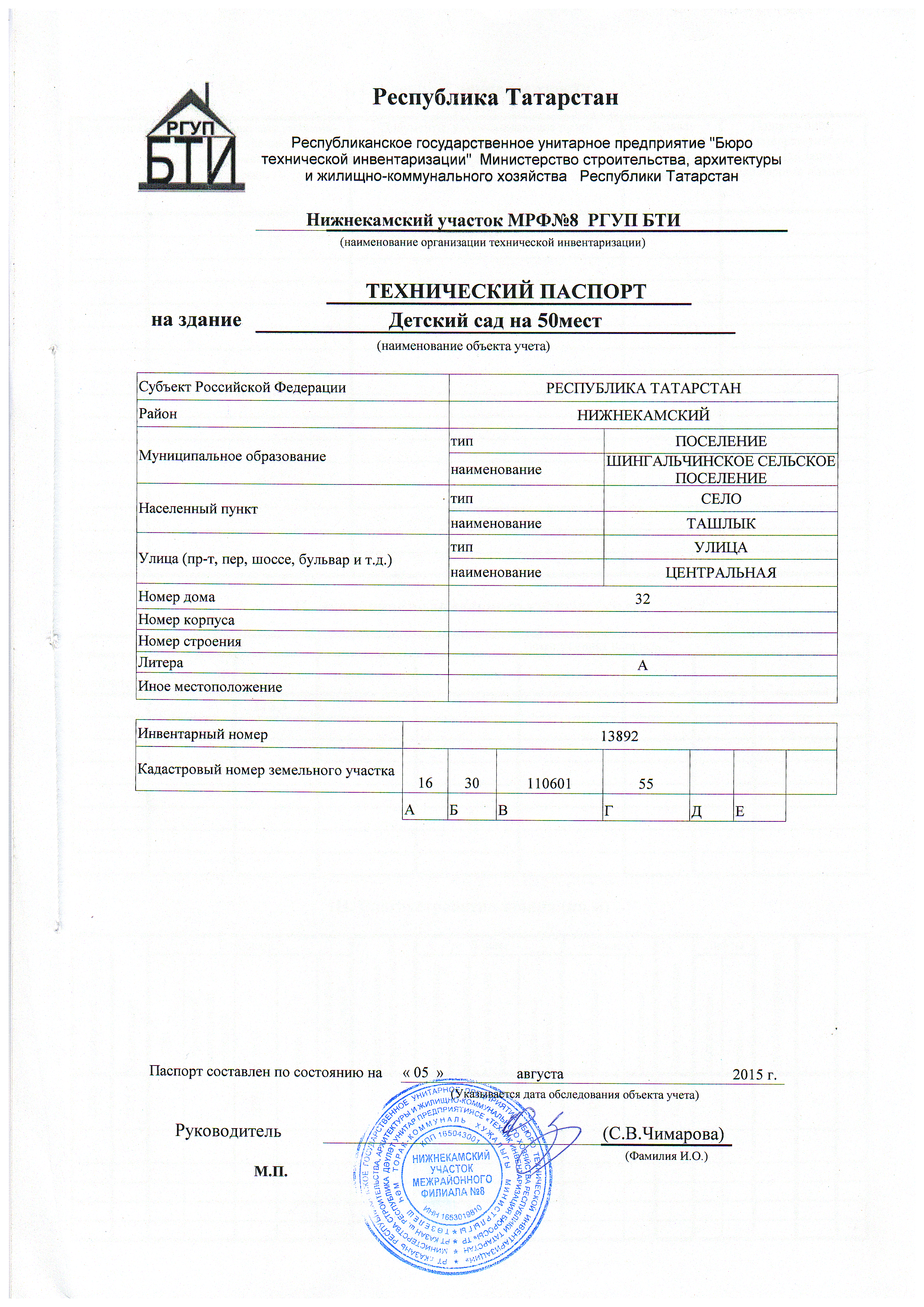 | Адрес: | 423554, Республика Татарстан, Нижнекамский район, с. Ташлык, ул.Центральная, д.32 |