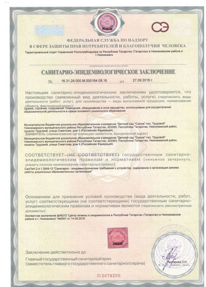 Муниципальное бюджетное дошкольное образовательное учреждение «Детский сад «Сказка» пос. Трудовой" Нижнекамского муниципального района Республики Татарстан
