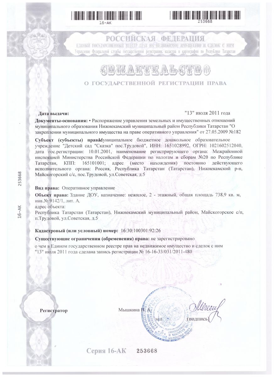 | Короткое название: | МБДОУ "Детский сад "Сказка" пос. Трудовой" НМР РТ |