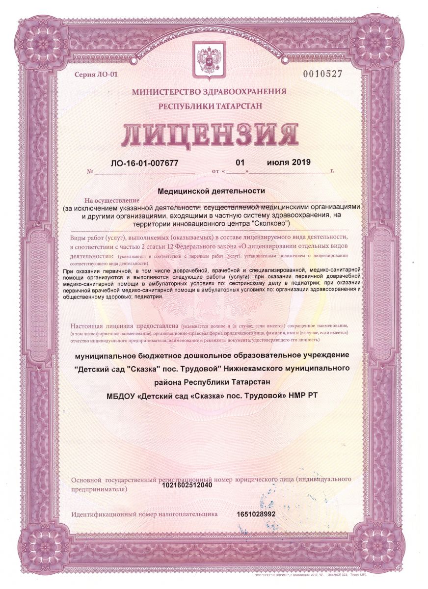 Муниципальное бюджетное дошкольное образовательное учреждение «Детский сад «Сказка» пос. Трудовой" Нижнекамского муниципального района Республики Татарстан