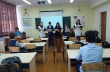 В МБОУ"ООШ п. Трудовой " в рамках месячника Года родных языков и в день 115 летнего юбилея со дня рождения поэта Мусы Джалиля по теме "Жизнь поэта - подвиг на века" в 9 классе прошел урок Мужества.