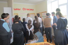 Специалисты ГАУСО «ТЦСПСиД «Веста» в НМР провели в нашей школе КВЭСТ-игра «Победный май», где рассказывали учащимся о солдатских письмах, научили делать пилотку, написали письмо-треугольники прадеду, участнику ВОв