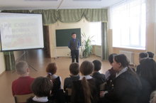В школе прошла встреча с детьми войны. Правда, их осталось очень мало. Участница мероприятия, которую организовала руководитель музея школы, Болтикова Т.И. Пикалева А.Г. рассказывала о детских, школьных годах, на которые выпала война. Рассказала стихотворение "Враги сожгли родную хату" Призывала ребят хорошо учиться, быть активными и сказала, что в такой светлой красивой школе плохо учиться неприлично.Ребята рассказывали о воспоминаниях своих дедов и бабушек