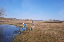 Юные волонтеры очистили берега реки от мусора.-Яшь волонтерлар елга ярларын чүп-чардан чистарттылар. 13.04.2023