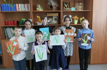 Сегодня учащиеся на уроке ИЗО рисовали цветы нашего края - чудесные нежные подснежники.