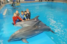 Улыбки и ликование царили в дельфинарии , куда пригласили наших детей. Дети узнали, как живут дельфины-артисты, чем питаются, много ли времени уходит на их тренировку и дружат ли между собой эти млекопитающие. Также мальчики и девочки могли погладить морских обитателей, сфотографироваться с ними. От имени администрации школы-интерната хочется выразить слова огромной благодарности директору Дельфинария Марселю Маратовичу Зарипову за предоставленный отдых.