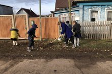 В рамках акции учащиеся 3 класса помогли пожилым гражданам с уборкой территории дома.