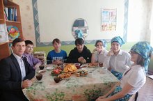 Безгә кунакка Зәй шәһәренең "Теремок" балалар бакчасы тәрбиячеләре И.И.Чупахин һәм Торопов О.А. килделәр. Кунаклар балаларга галстук рәвешендәге бүләк открыткалары ясау буенча мастер-класс күрсәттеләр.